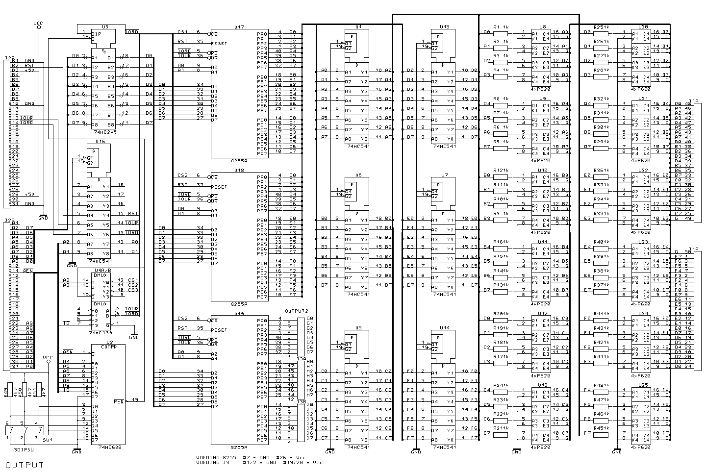 selection of the 8255's (U17..19) is created with a 8-bit