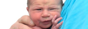 Net geboren en nu al een foto shoot. Ze heeft dan ook weinig op met al die poespas maar hangt liever tegen pappa of mamma aan.