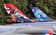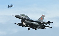 I heard several jet engines starting up and it seemed today photo flights where scheduled for all participants. From all delegations 2 or 4 fighters would take to the air and return after about an hour. For me an oppertunity to photograph the Greece F-16's that I have missed last Wednesday.