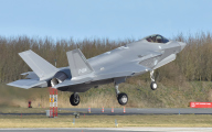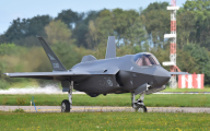 Although the weather was again not cooperating (a bit dark and foggy) I had some luck to spot the F-35 F-009 for the first time. I was standing on the north side of runway 23 which usually means you have to photograph against the light but because it was so cloudy this was not an issue.