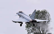 The information was correct, at 8:36 the first Eurofighters left to return to Germany. Followed by all the other participants in the course of the morning and early afternoon. Not very spectacular take-offs but good enough for a few nice pictures. Except for the Finns and the Swedes, they went high and straight. Hardly any chance to take pictures of this. I had expected this and had placed the 1.4x extender between the lens and camera. This made focusing a bit of a drama. Nice try :)./br>