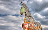 Trojan horse as decoration at the rollercoaster Troy area, Toverland Sevenum