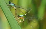 Mating Common Bluetails (Ischnura elegans)